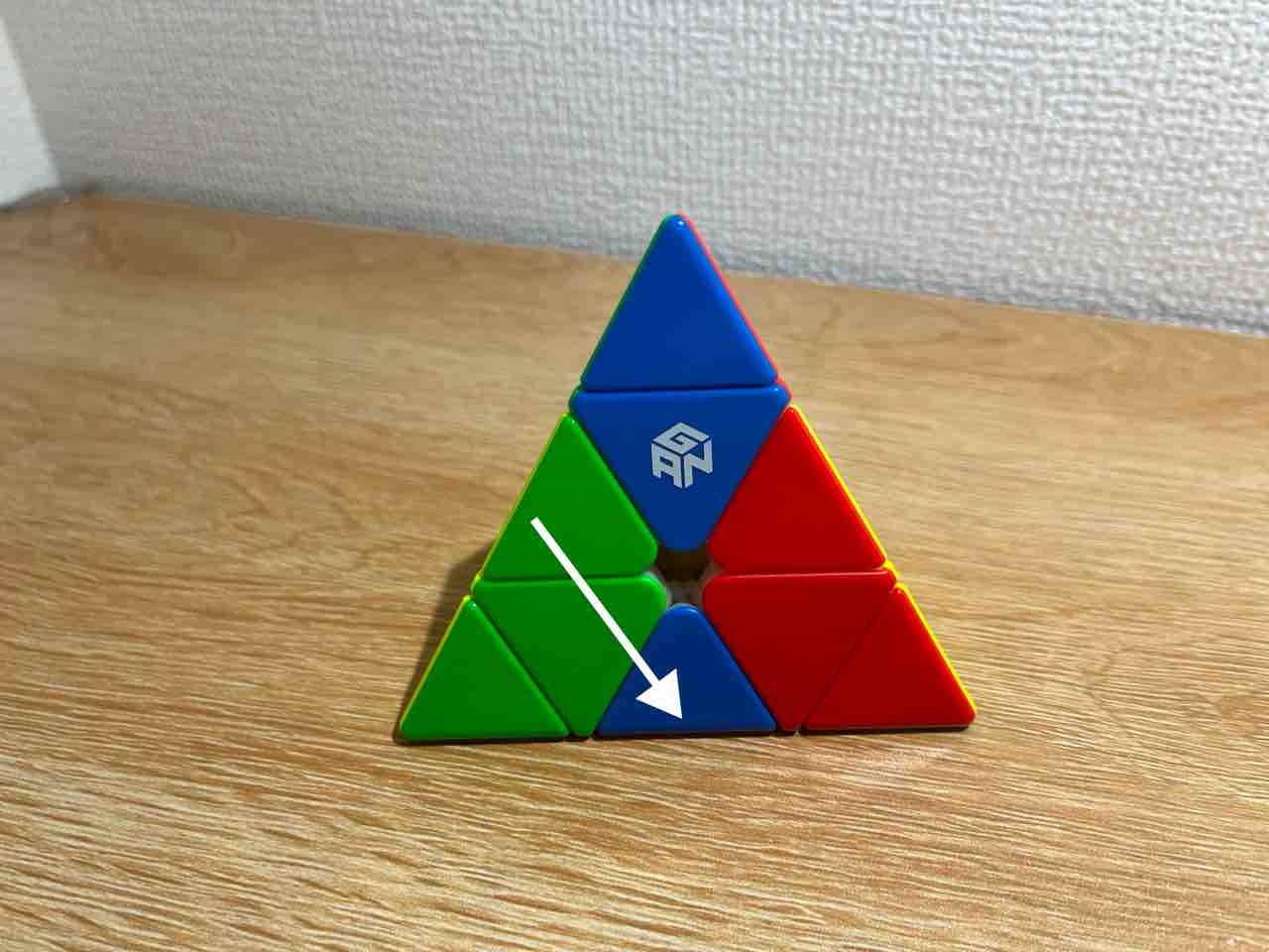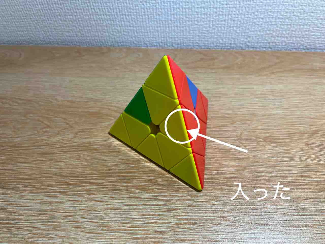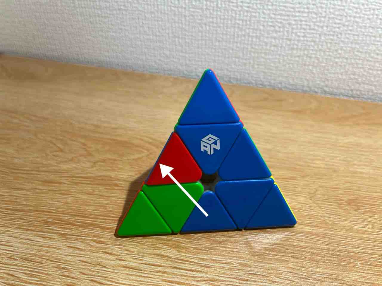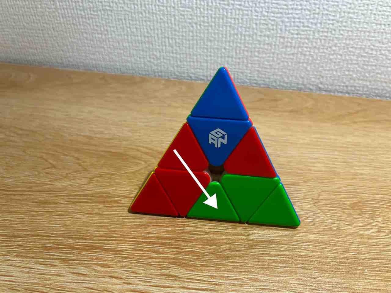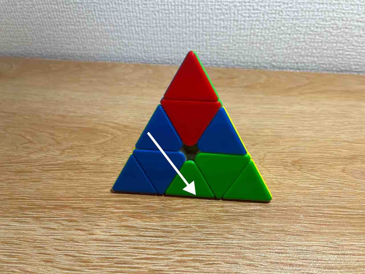 このように揃えたい面を下に、入れたいピースを右中段か左中段に配置します。