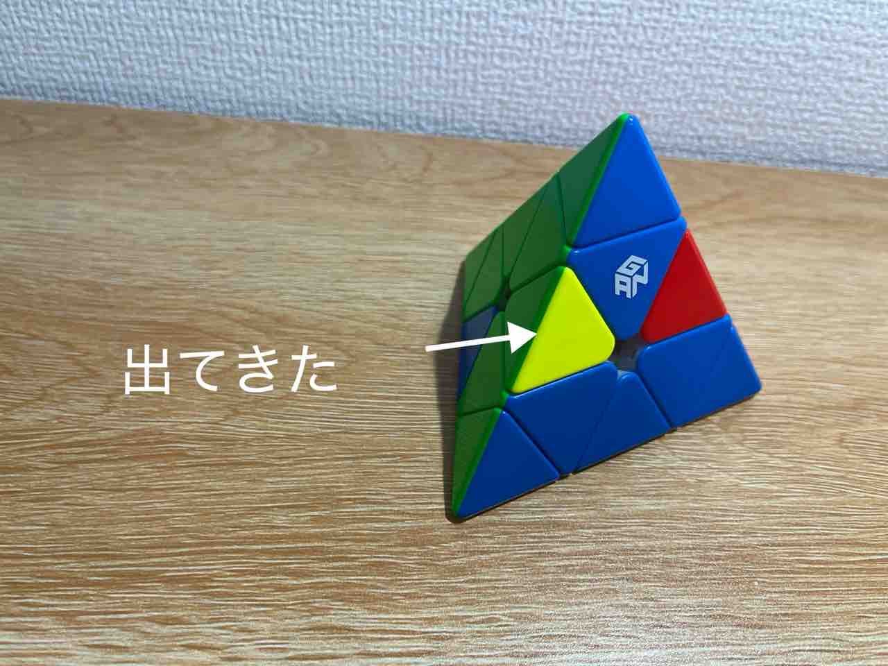 3.どれか一色の完全一面を作り(ここでは黄色)