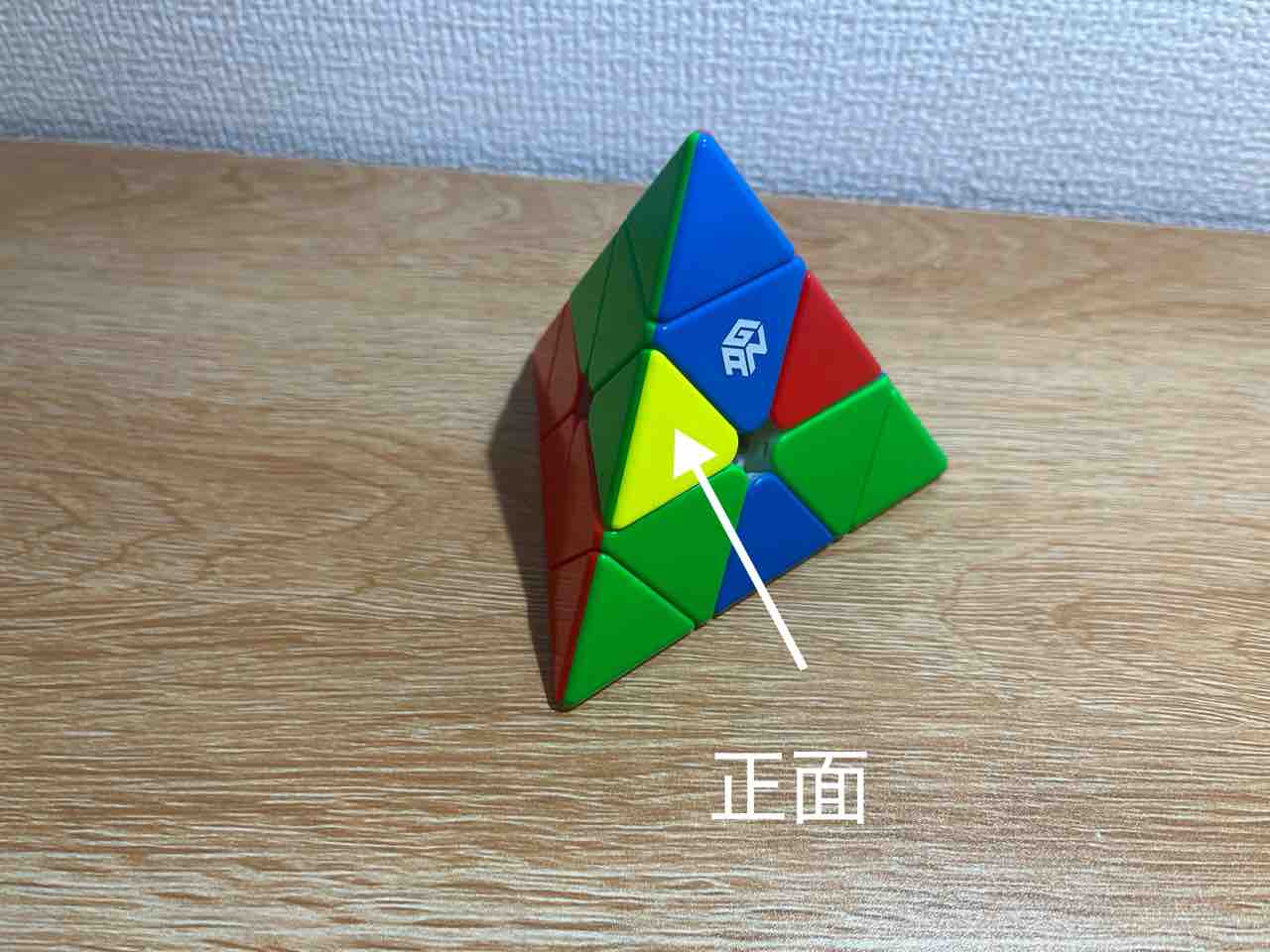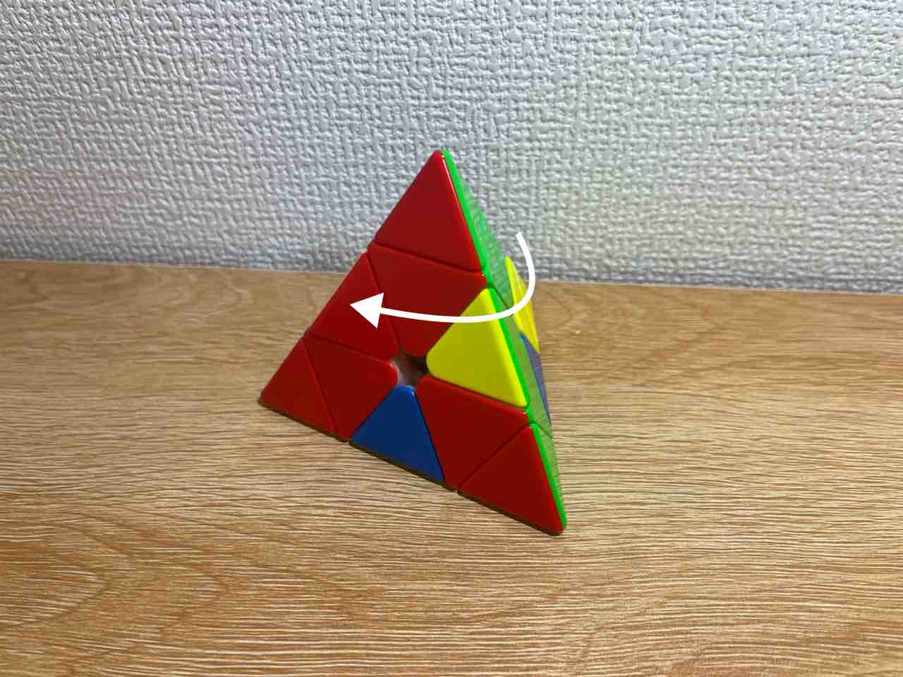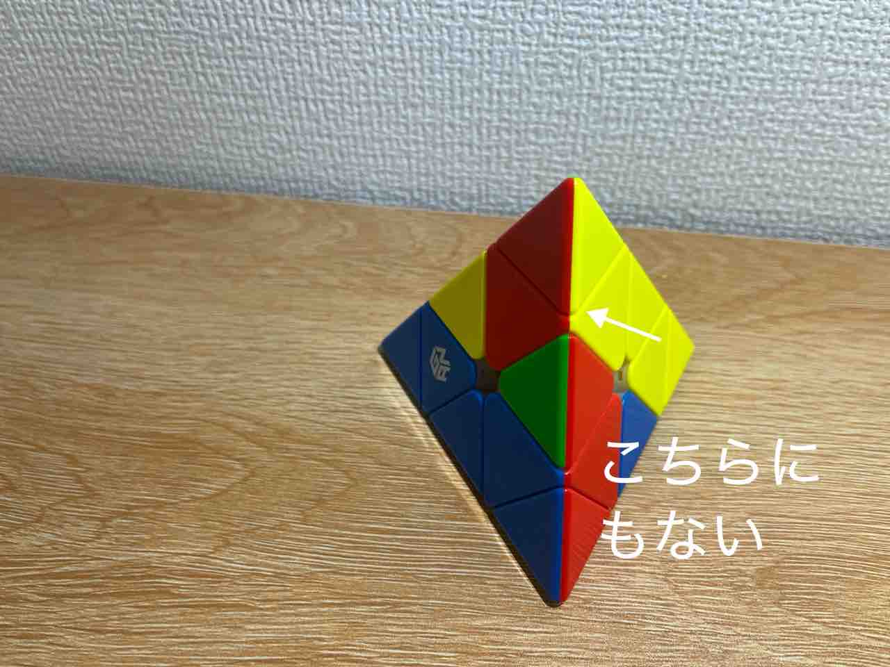 今回は揃えたい色が黄色で右中段に配置した時に黄色が正面になるのでこのように持ちます。