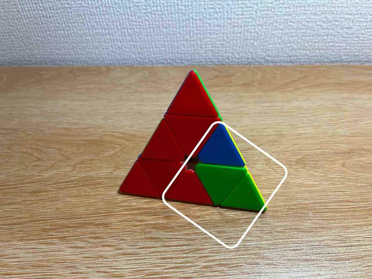 右中段か左中段かはピースの色を見て判断します。揃えたい面の色が正面に来るように持ちます。